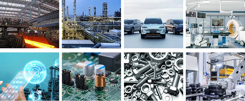 Сега воспоставивме широки партнерства со клиенти во различни индустрии, вклучувајќи челик, хемиска, автомобилска, медицинска, комуникации, електроника, хардвер, производство на машини, нова енергија, храна и пијалоци, мебел и пакување.