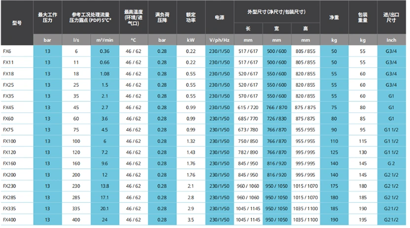 Сеопфатен асортиман на сушари за воздух е достапен за различни индустрии и апликации со точки на росење до -70°C/-100°F.
