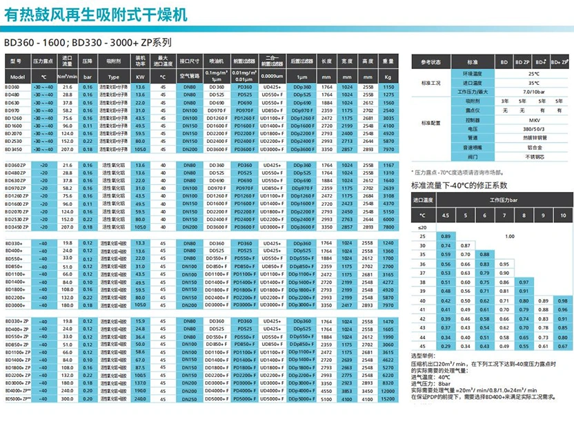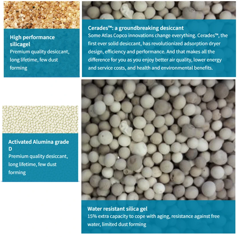 Во зависност од точката на росење под притисок, сушените може да се направат од алумина, силика гел или материјали од молекуларно сито. Минималната точка на росење притисок може да достигне -70℃.