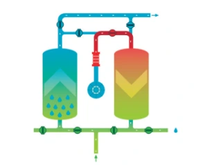 Кога едната кула е во режим на адсорпција, другата кула е во режим на регенерација. Регенерацијата на адсорбентот троши топлина од електричниот грејач и мала количина на готов компримиран воздух. За моделот со нулта потрошувачка на воздух, регенерираниот воздух може да се рециклира.