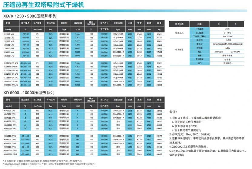 Сушачите за адсорпција на топлина со компресија XD или X користат висококвалитетни адсорбенти и ефикасно ја користат топлината на компресија од компресорот без масло за да го регенерираат адсорбентот, значително намалувајќи ја потрошувачката на енергија и трошоците за одржување.