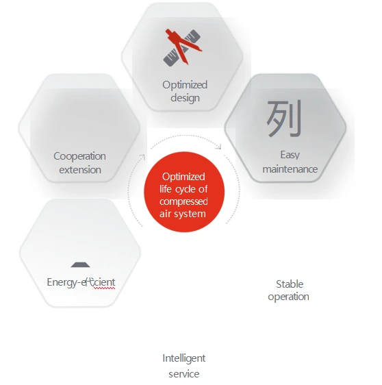 Нашиот систем за воздушни компресори со завртки без масло е специјално дизајниран да работи на 46°C, што е супериорно во однос на повеќето дизајни кои се погодни само на 40°C.
