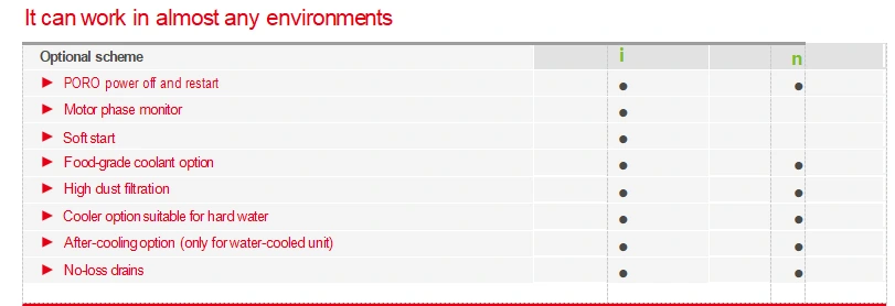 Нашите компресори нудат течности за ладење од типот на храна, високо филтрирање прашина и ладилници за тврда вода и други опции приспособени на сурови средини, кои можат да ги задоволат вашите потреби за повеќекратни апликации.