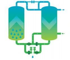 Додека едната кула е во режим на адсорпција, другата е во режим на регенерација. Гасот за регенерација бара одреден дел од готов компримиран воздух.
