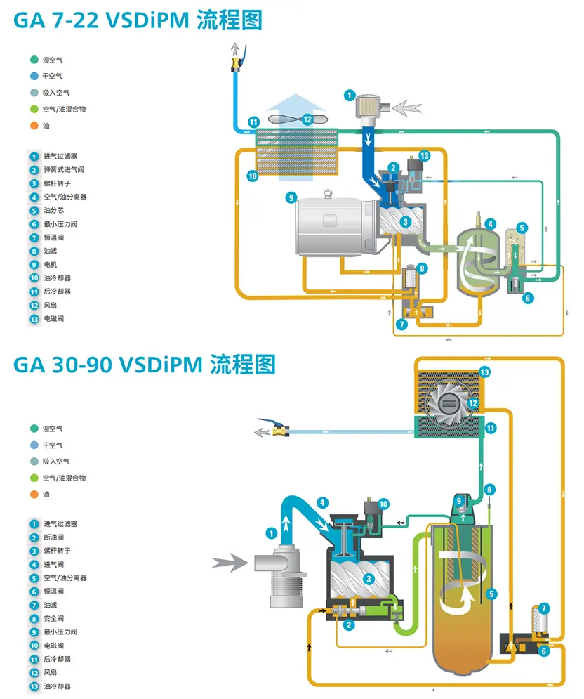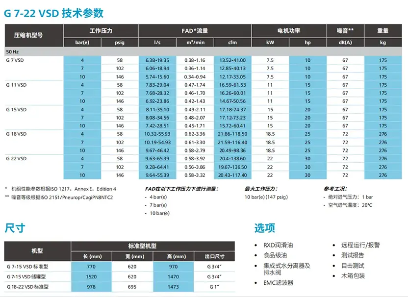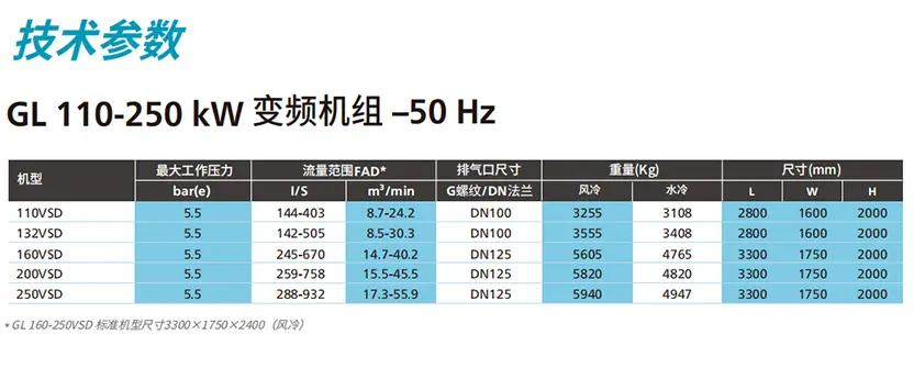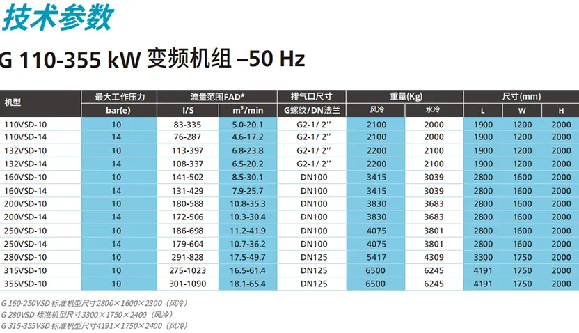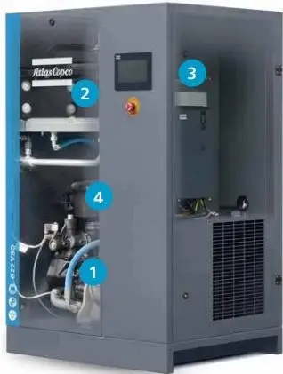 Воздушниот компресор VSD со променлива фреквенција на Atlas е специјално дизајниран за континуирано работење. Погонскиот систем усвојува ефикасен мотор со постојан магнет, кој може да постигне одличен ефект на ладење на маслото. Технологијата VSD може да постигне заштеда на енергија до 35%, а нејзиниот помал отпечаток обезбедува флексибилност на инсталацијата.