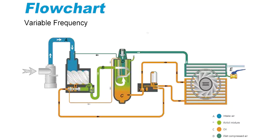 Воздушниот компресор VSD со променлива фреквенција е специјално дизајниран за континуирано работење.