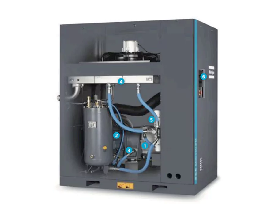 5. Сите Atlas Copco G(L)VSD компресори поминаа низ EMC тестирање и сертификација. Работата на компресорот нема да влијае на надворешните уреди, и обратно.